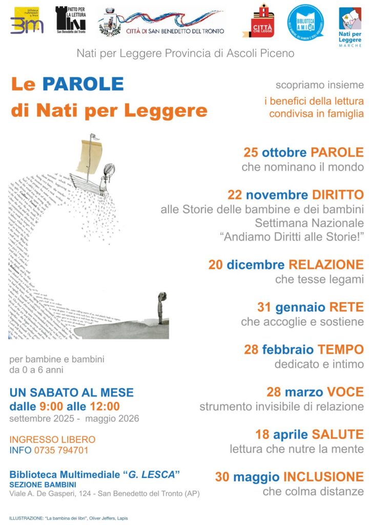 Ripartono le attività di “Nati per Leggere – NpL” alla biblioteca comunale “Giuseppe Lesca”. Con la rassegna “Le PAROLE di Nati per Leggere” riprendono da sabato 25 ottobre gli incontri in biblioteca a ingresso libero per bambini da 0 a 6 anni.