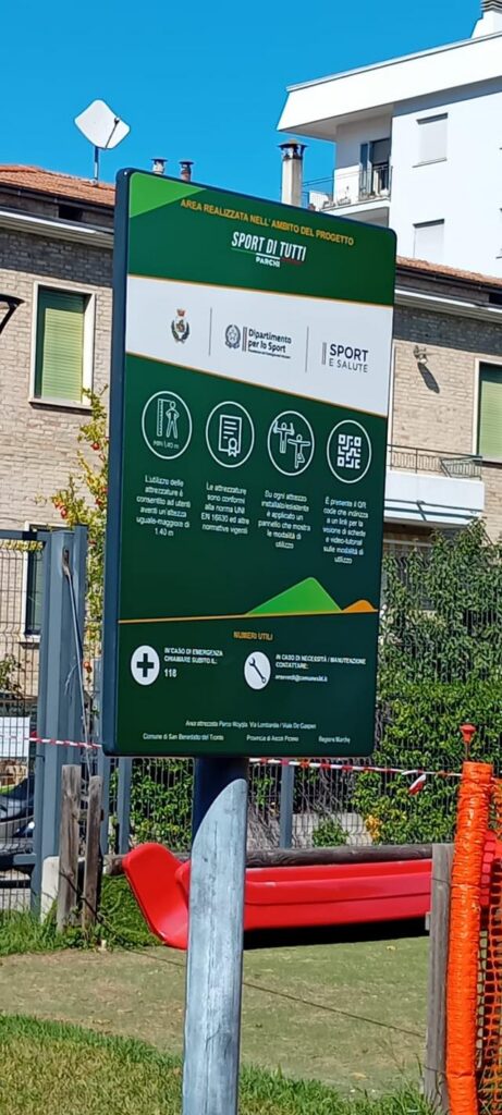 L’intervento rientra nel progetto nazionale “Sport di tutti – Parchi”, promosso dal Ministro per lo Sport e i Giovani in collaborazione con Sport e Salute e con il sostegno dell’Associazione Nazionale Comuni Italiani – ANCI, al quale il Comune di San Benedetto del Tronto ha aderito, adottando il modello cosiddetto “Large” del progetto, ovvero quello pensato per le necessità delle città di medie dimensioni.
