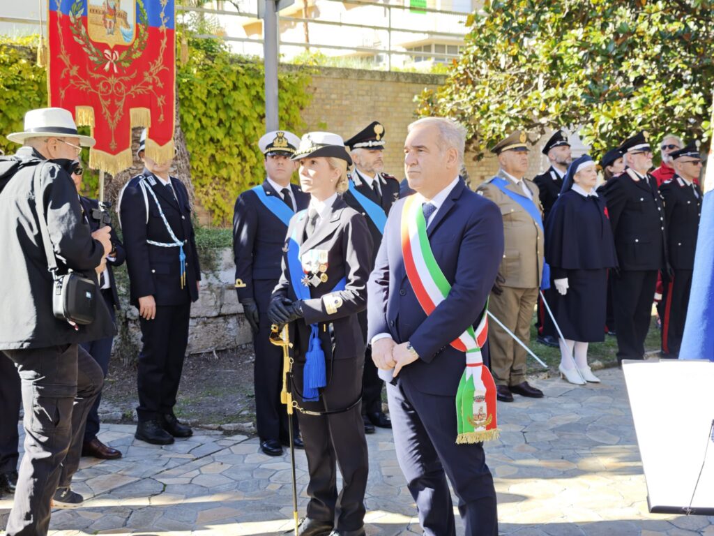 Nel giorno del 4 novembre dedicato alla celebrazione dell’Unità Nazionale e festa delle Forze Armate, alla presenza dei rappresentanti delle forze dell’ordine e delle forze armate, delle associazioni combattentistiche e d’arma, delle istituzioni e dinanzi ai cittadini, il sindaco Antonio Spazzafumo, accompagnata dal capitano di corvetta Ylenia Ritucci della Capitaneria di Porto, ha deposto una corona dinanzi alla statua del milite della Grande Guerra di largo Onorati.