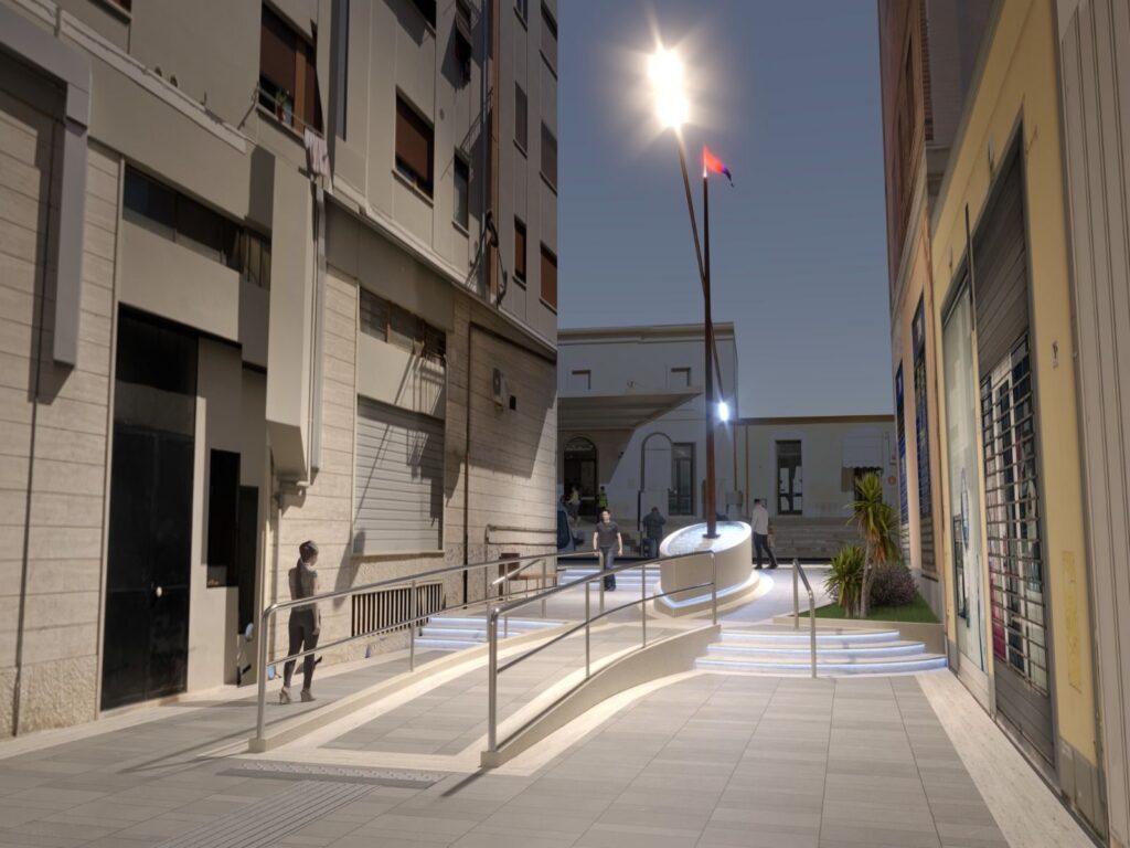 Da evidenziare ancora quello che è stato chiamato dal progettista “l’approdo di via Palermo”: il collegamento tra la stazione e lo spazio sottostante di via Palermo sarà realizzato tramite una scalinata a due rampe e uno scivolo senza barriere architettoniche che richiameranno la forma di una barca sull’arenile, tipica di un approdo dopo un lungo viaggio.