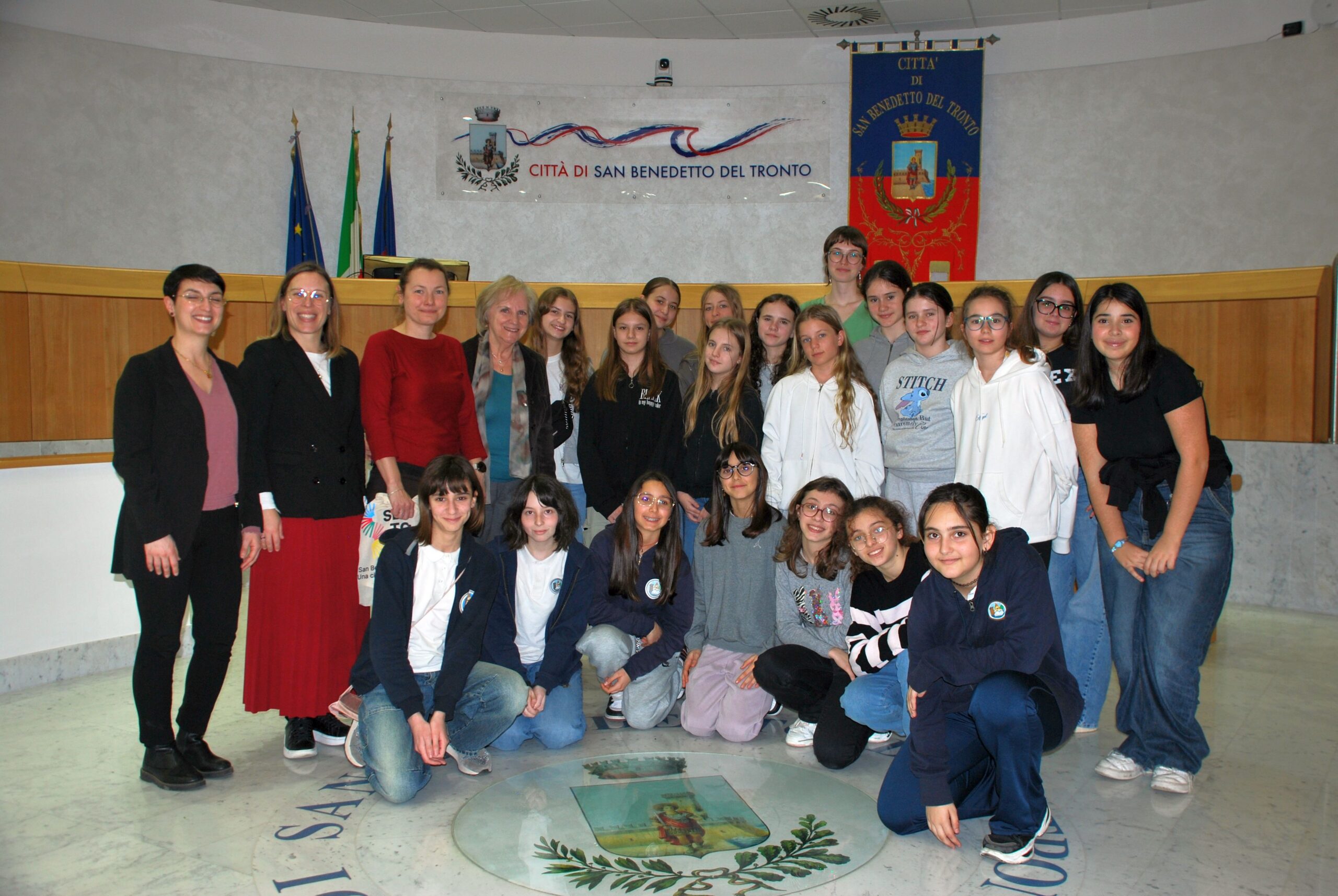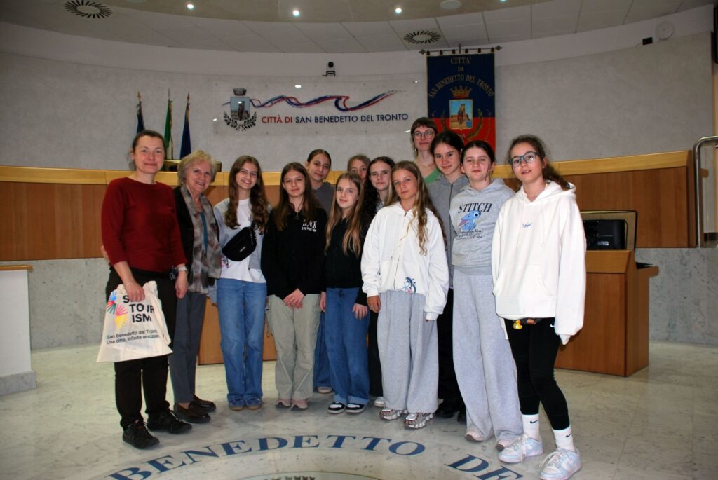 l Commissario straordinario del Comune di San Benedetto del Tronto Rita Stentella ha accolto in sala consiliare, nel pomeriggio di mercoledì 11 marzo, alunne e docenti di scuola secondaria dei plessi “Sacconi” e “Manzoni” dell’ISC Nord insieme alle loro ospiti, 10 alunne e 2 docenti provenienti dalla città di Zabrze in Polonia, a San Benedetto per una settimana nell’ambito del progetto Erasmus+.