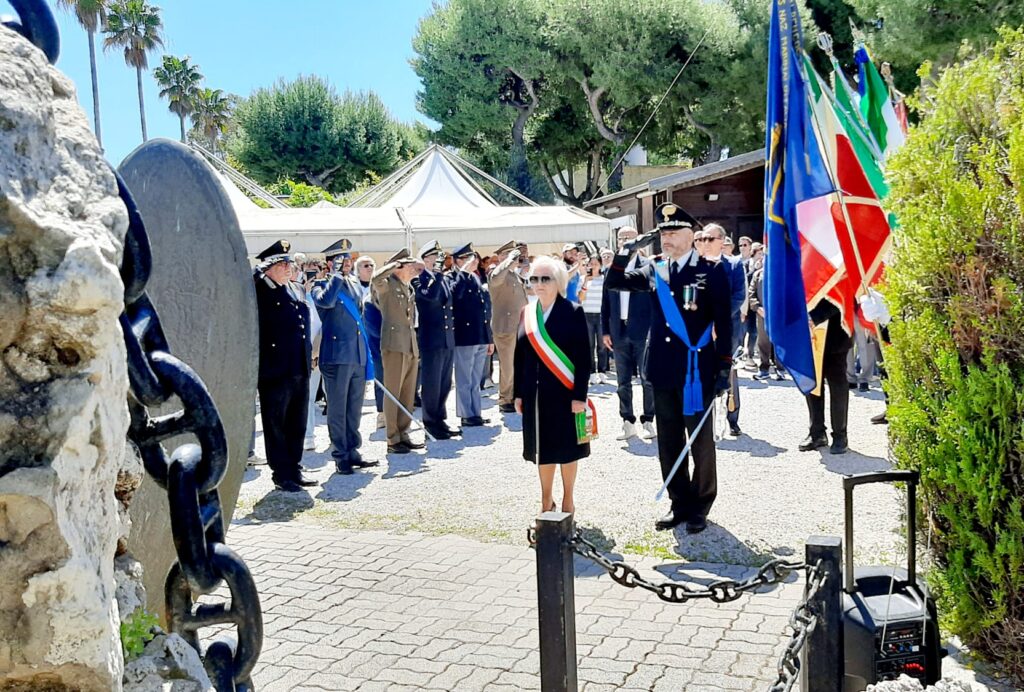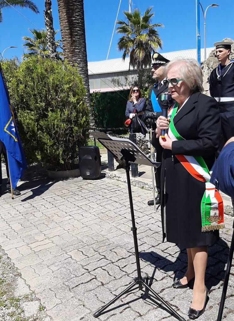 Il corteo si è quindi spostato verso la sede dell’Associazione Nazionale Marinai d’Italia, dove si trova l’ultimo monumento, quello ai Caduti in Mare. Lì, il commissario Stentella ha pronunciato il suo intervento che qui si riporta inegralmente.